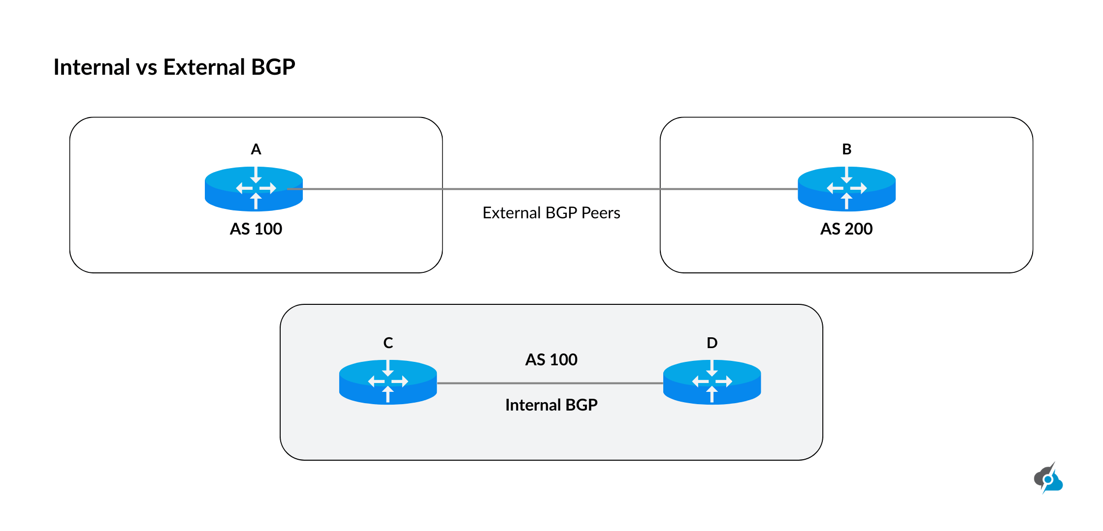The Border Gateway Protocol (BGP) leverages internal and external BGP (External (eBGP) and Internal (iBGP)), each playing a distinct role in steering data routing across and within autonomous systems to power the Internet’s network infrastructure. These types differ in how they propagate routes, serving unique purposes for global connectivity and internal network efficiency.