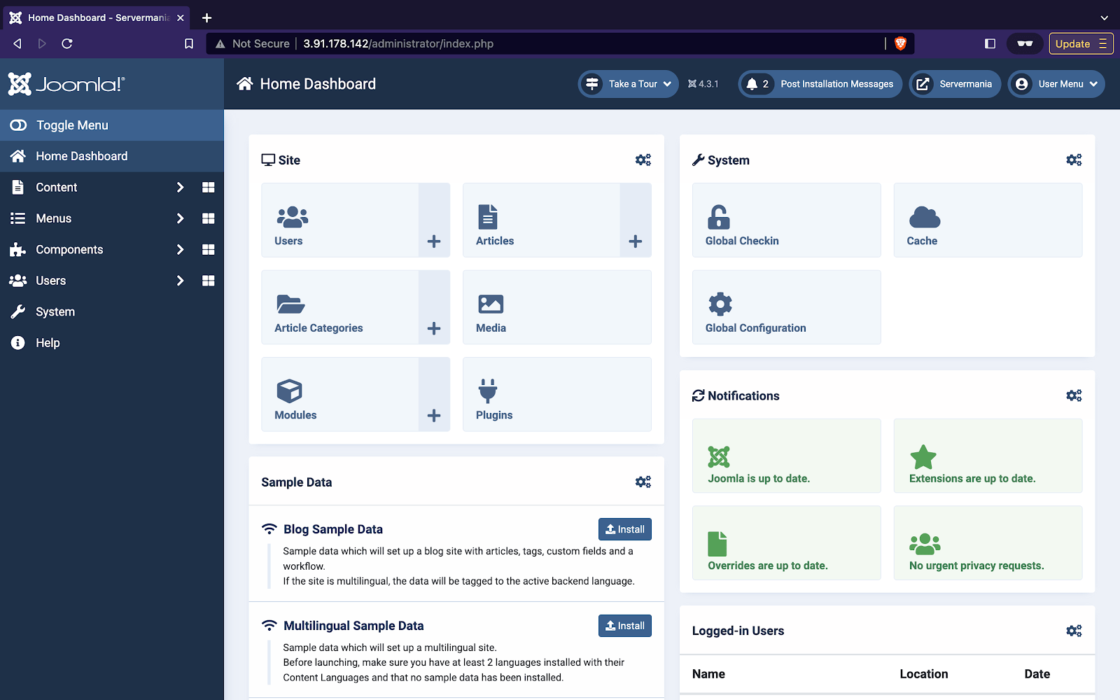 Configuring Joomla