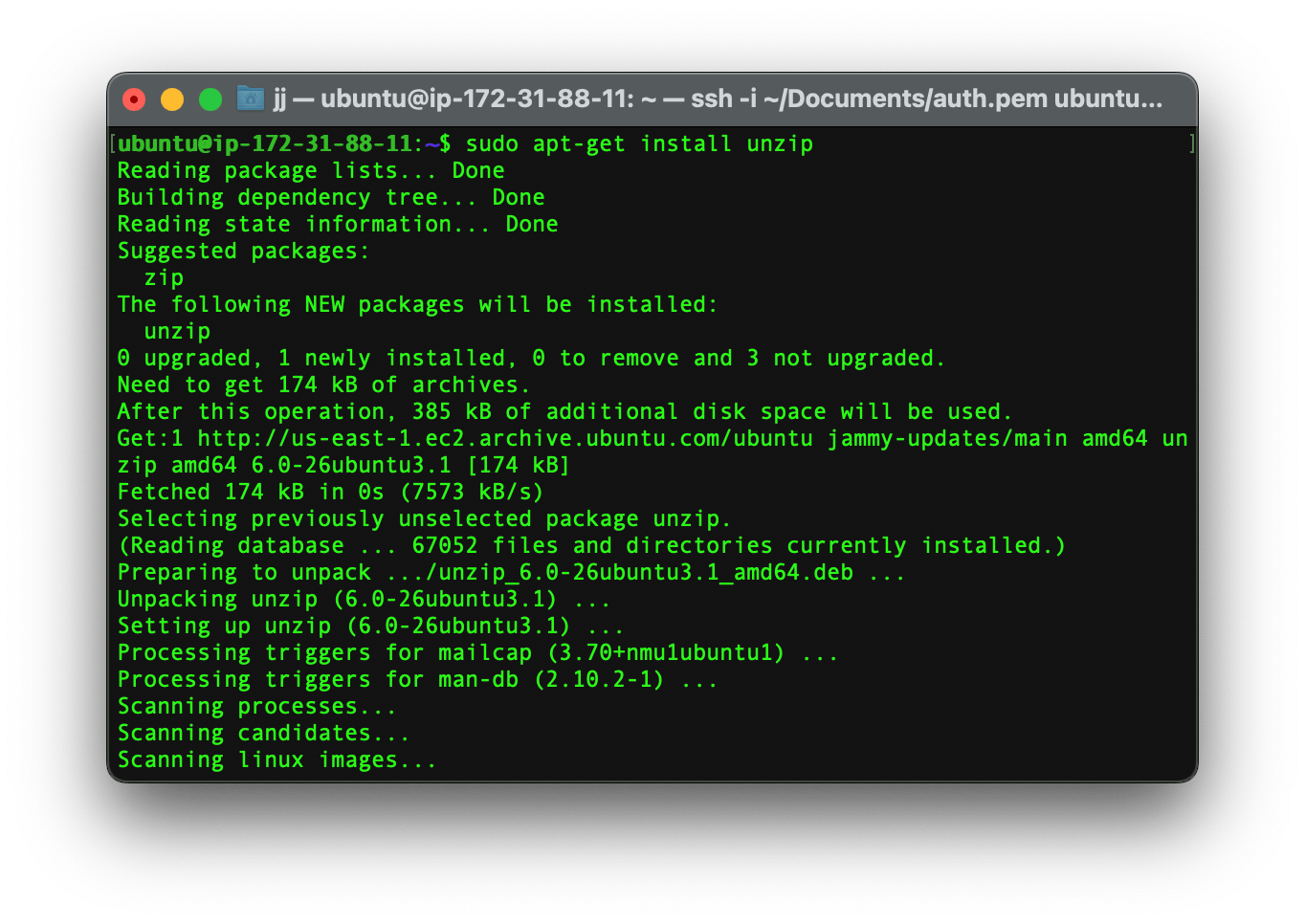 sudo apt-get install unzip