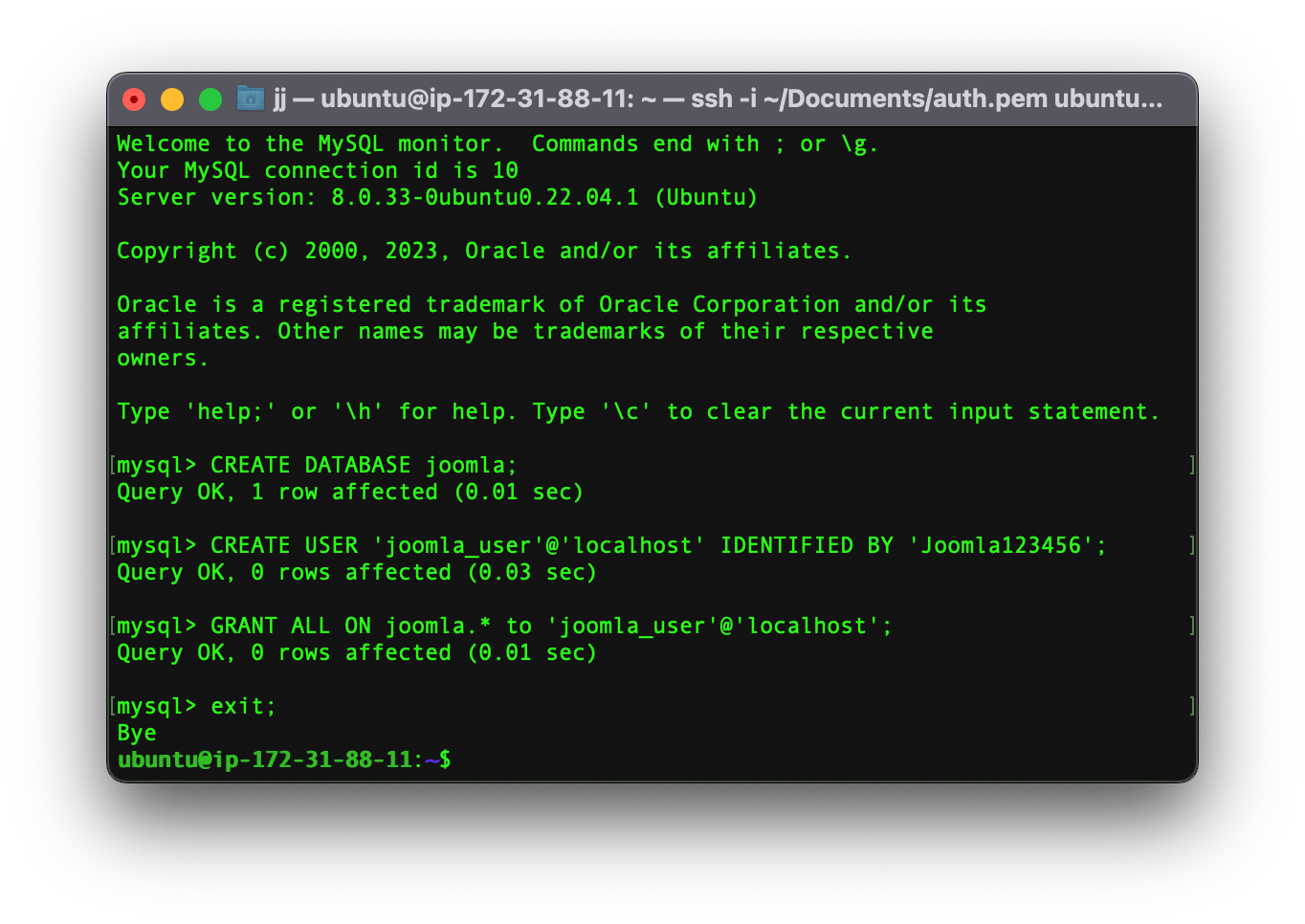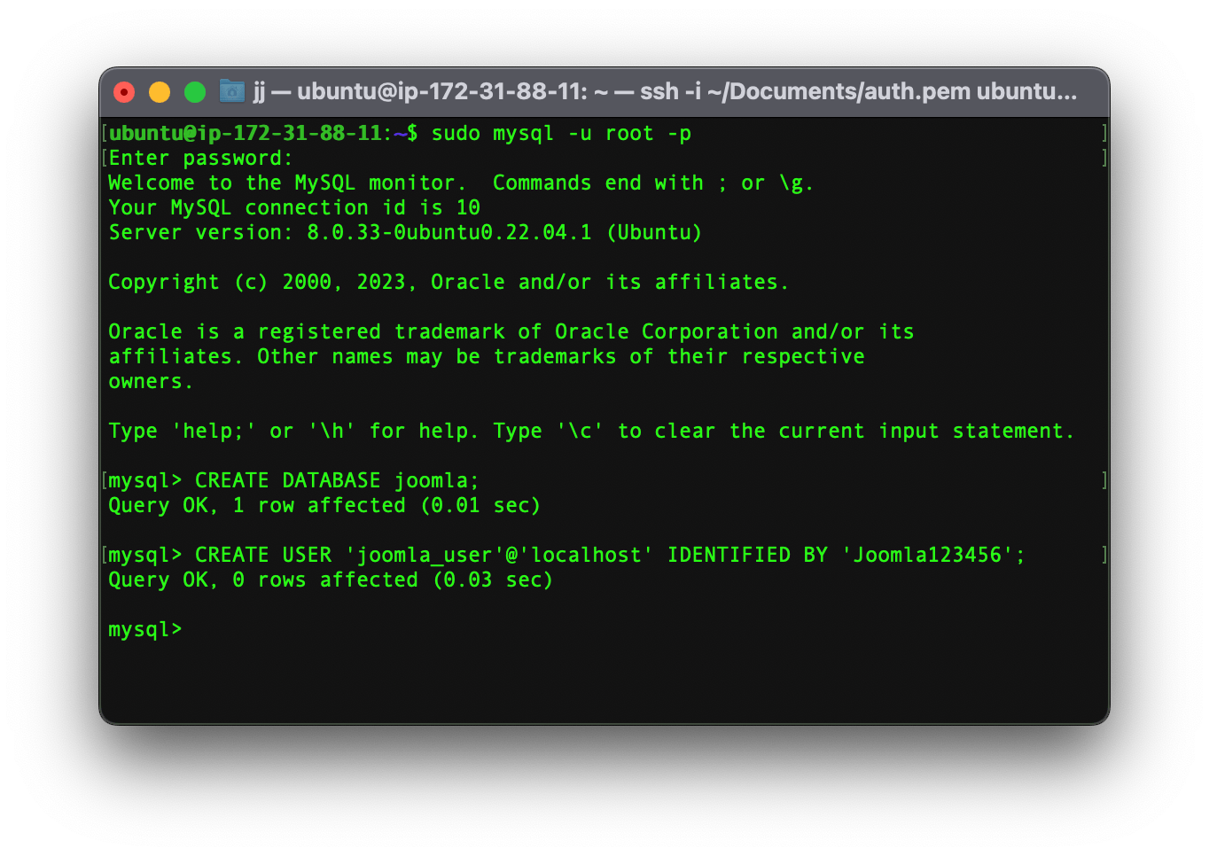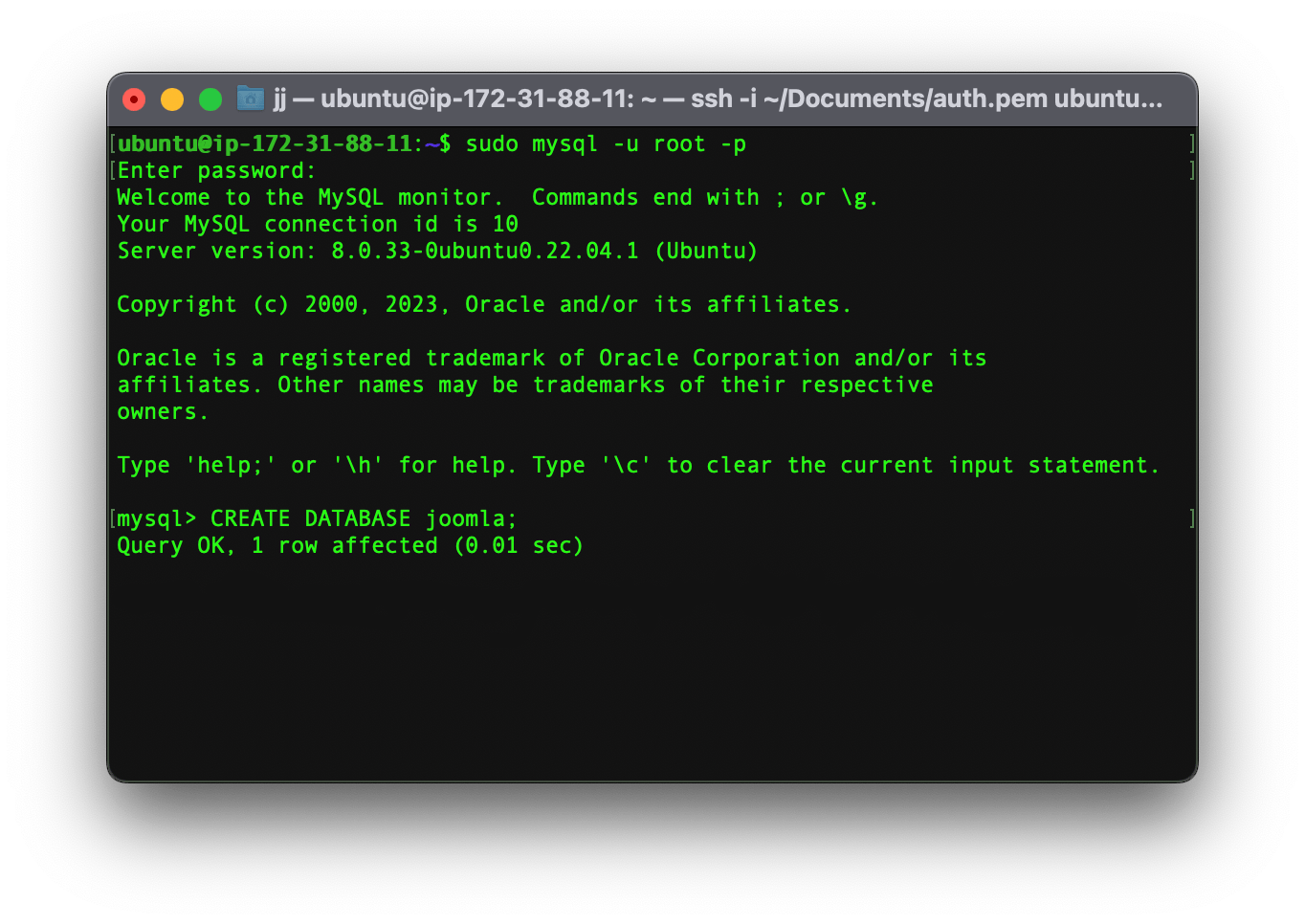 CREATE DATABASE joomla;