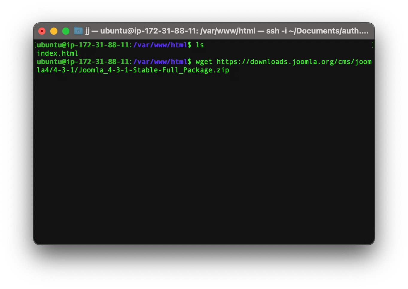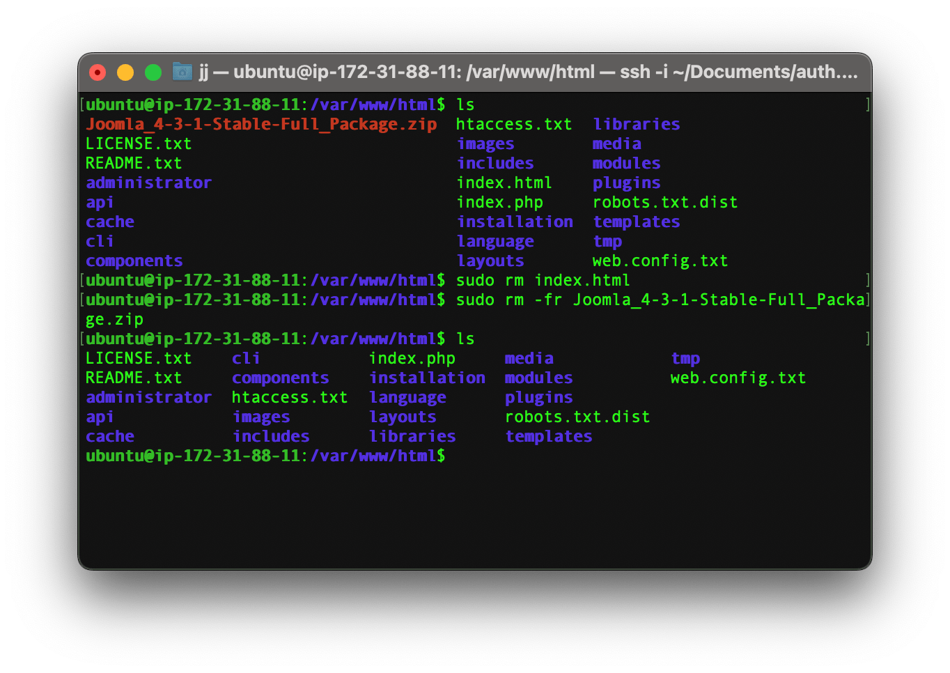 Now you can type ls on your terminal and see the file structure of Joomla.