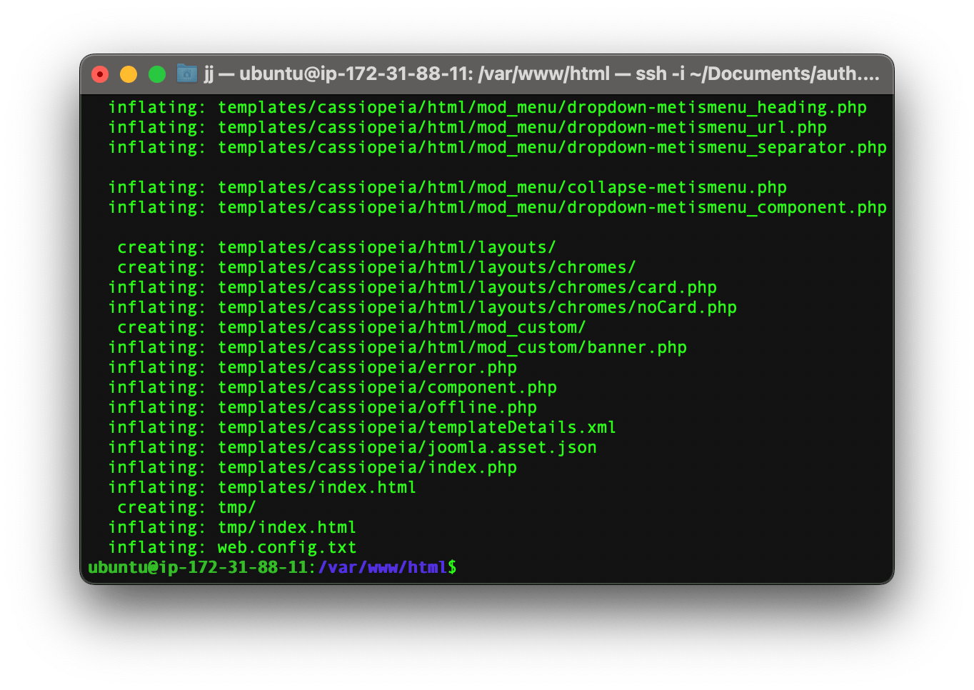 Now that we have the Joomla .zip file we need to unzip it using the library that we have installed previously.